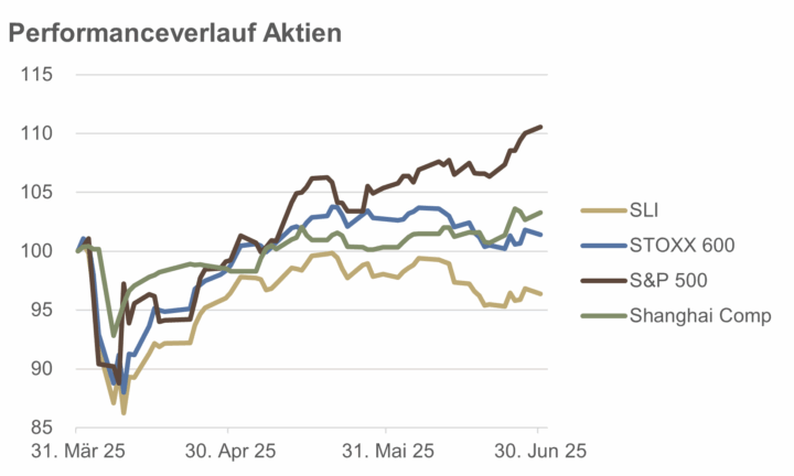 Auf Halbjahressicht ergab sich ein differenzierteres Bild. Während der S&P 500 und der Nasdaq jeweils ein Plus von 5.5% auswies, lag der STOXX 600 mit 6.6% leicht vorn. Auffällig stark entwickelten sich einzelne europäische Märkte wie Polen, Ungarn, Österreich, Spanien und Deutschland – alle mit Zuwächsen von über 20%. Der SLI hingegen kam im ersten Halbjahr lediglich auf 2.1%.