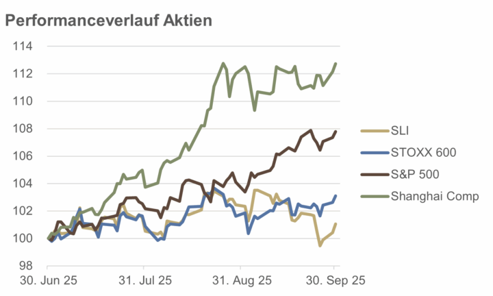 In Europa gewann der STOXX 600 im 3. Quartal 3.1%, während der defensiv geprägte Swiss Leader Index (SLI) lediglich um 1.1% zulegte. Hauptverantwortlich für die relative Schwäche war die Nestlé-Aktie, die im Quartal über 7% verlor. Der Konzern stand vor einem erneuten Führungswechsel – bereits der dritte CEO innerhalb von dreizehn Monaten.